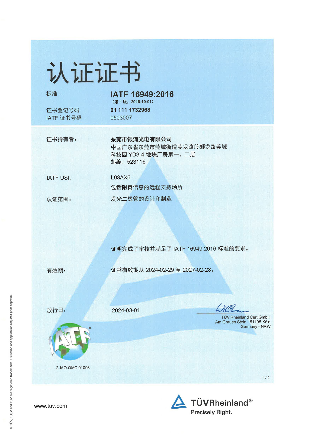 IATF 16949:2016 汽车行业质量管理体系认证证书